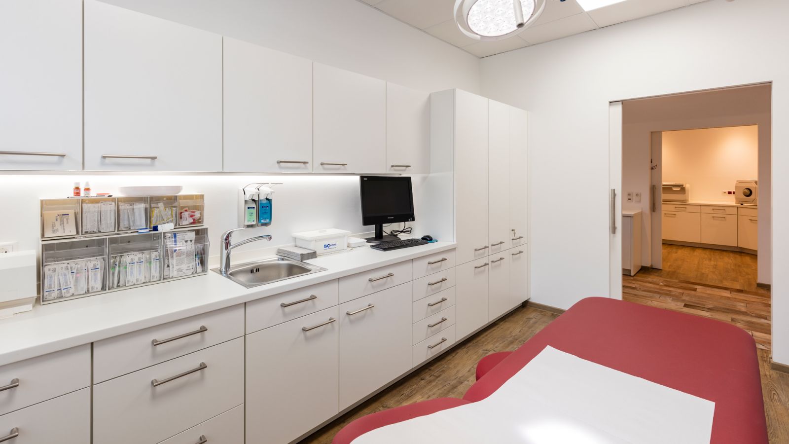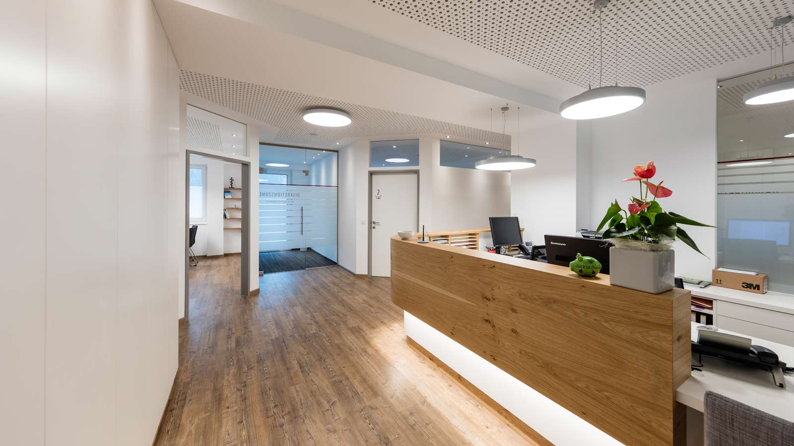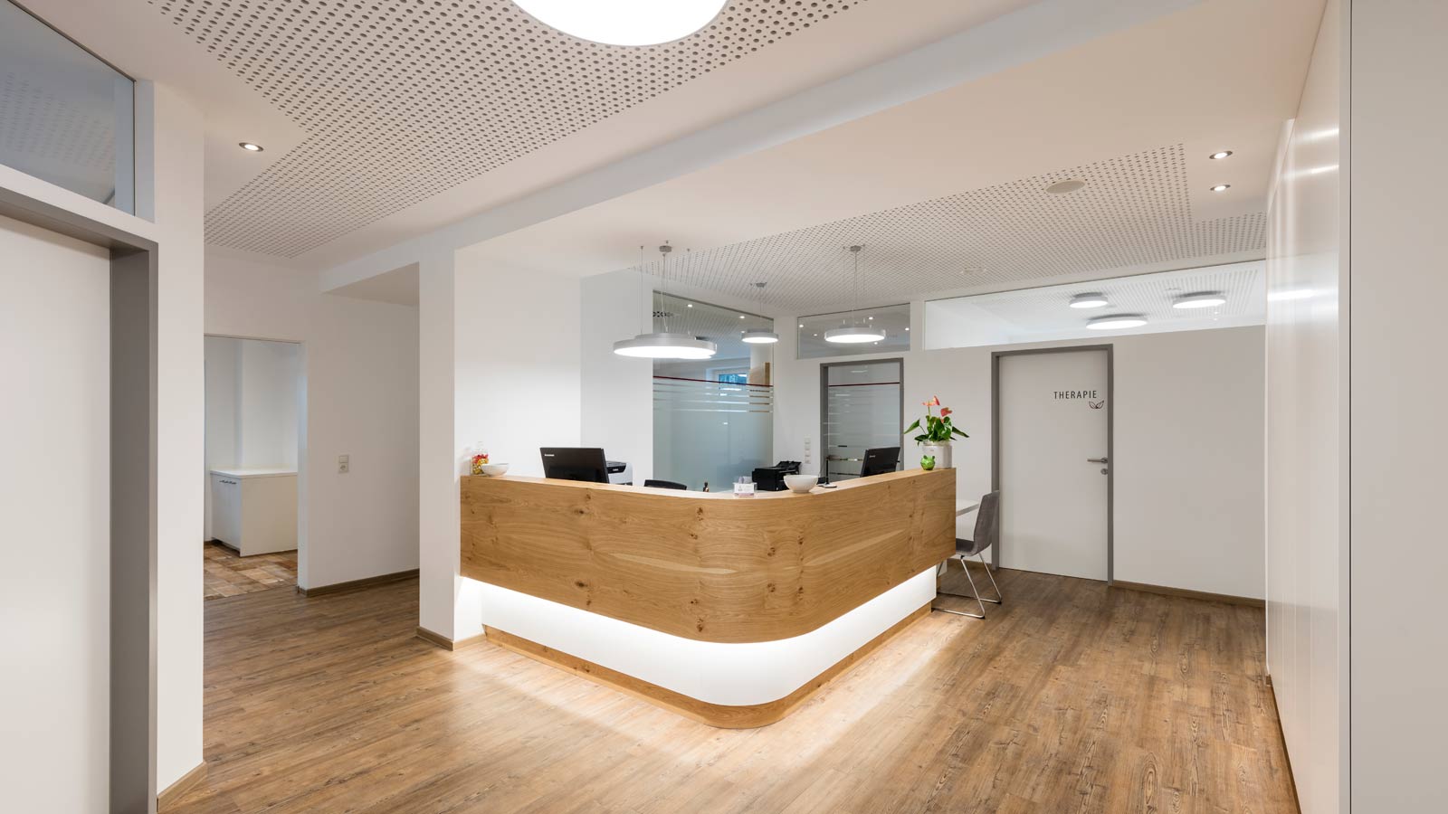 Unsere Praxisräumlichkeiten sind hell und freundlich gestaltet. Wir haben eine Diskretionszone eingerichtet, die es uns ermöglicht Patienten einzeln am Empfang zu betreuen.